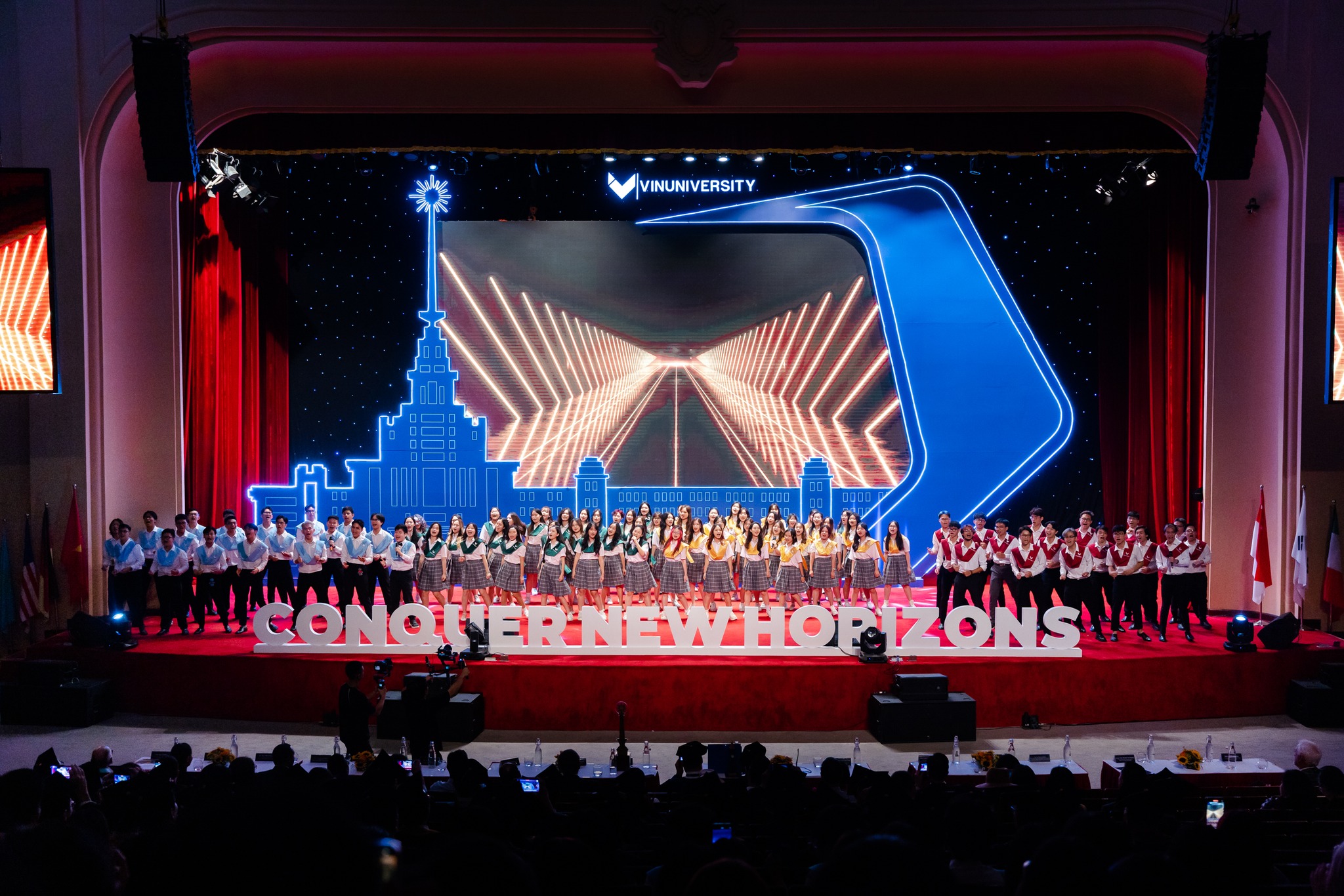 On October 7, 2023, the Opening Ceremony of Convocation Day was held at VinUni to welcome Academic Year 2023 – 2024. This year, Convocation Day followed the theme “Conquering new horizons” and over 1,500 students, parents and lecturers were present to participate in this unforgettable event.