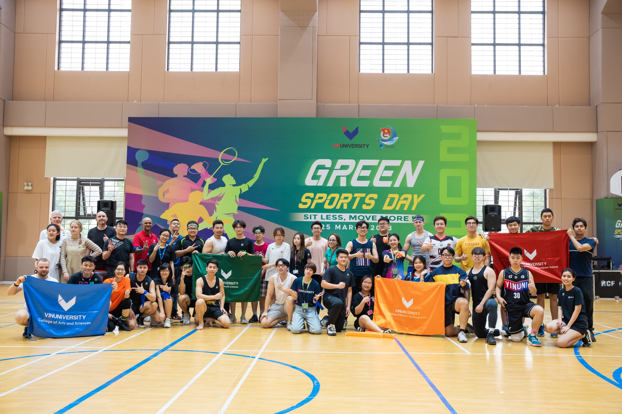 Green Sports Day 2023 with the slogan “Sit Less Move More” received great support from students and lecturers at VinUni. The noble sportsmanship was shown in many different categories such as tug of war, water polo, electronic sports, basketball, Zumba, shuttlecock, etc.