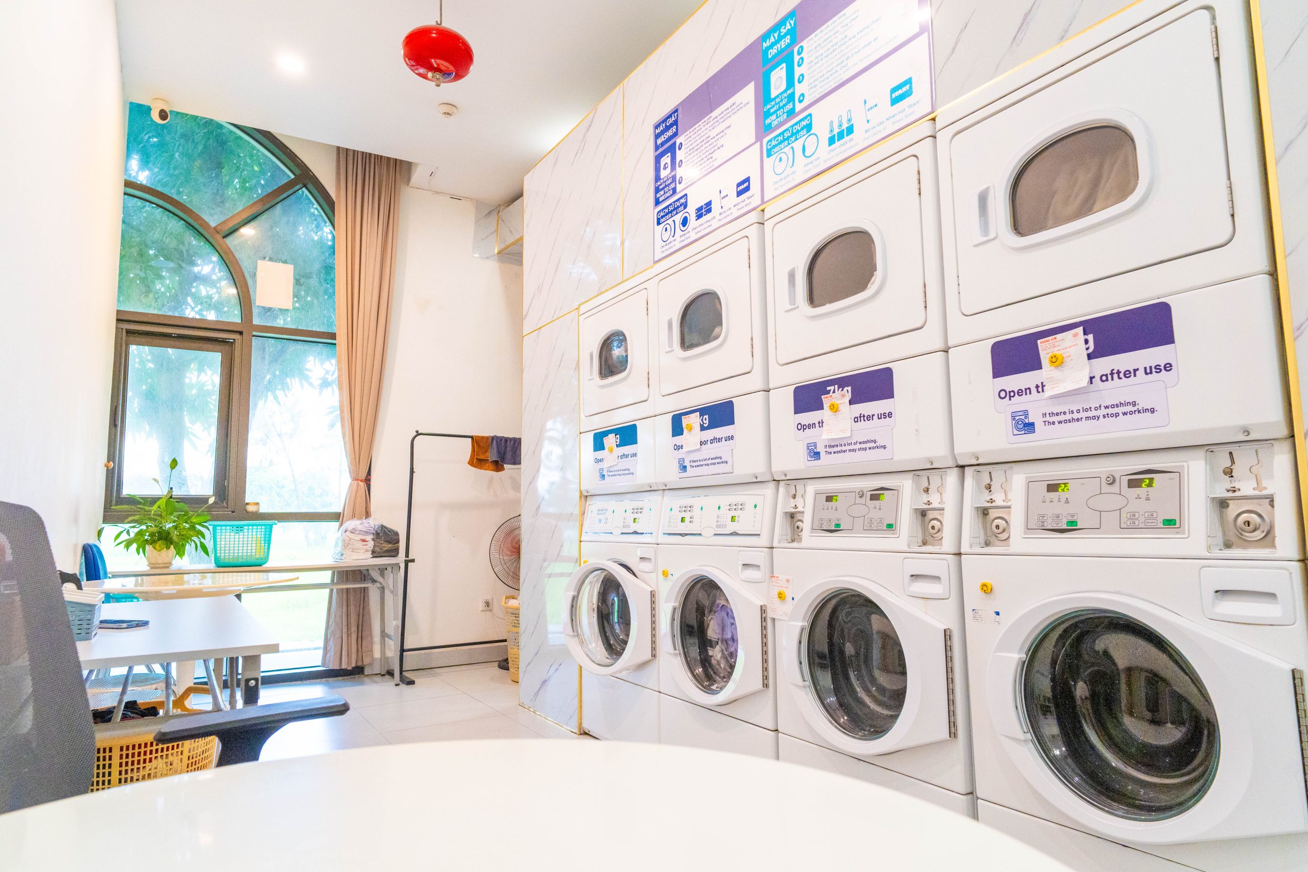 Phòng giặt đồ của VinUni nằm tại tầng 1, phòng JB101, và được quản lý bởi nhà cung cấp dịch vụ bên ngoài. Phòng được trang bị máy giặt và máy sấy, chỉ dành riêng cho cư dân ở Ký túc xá với mức chi phí nhỏ. Nếu có bất kỳ vấn đề nào liên quan đến hoạt động của các thiết bị giặt, cư dân nên báo cáo cho Cán bộ Quản lý Ký túc xá hoặc trực tiếp với nhà cung cấp dịch vụ giặt đồ. Trong trường hợp khẩn cấp, cư dân được khuyến khích gọi đường dây nóng bảo trì hoặc an ninh để được hỗ trợ kịp thời.