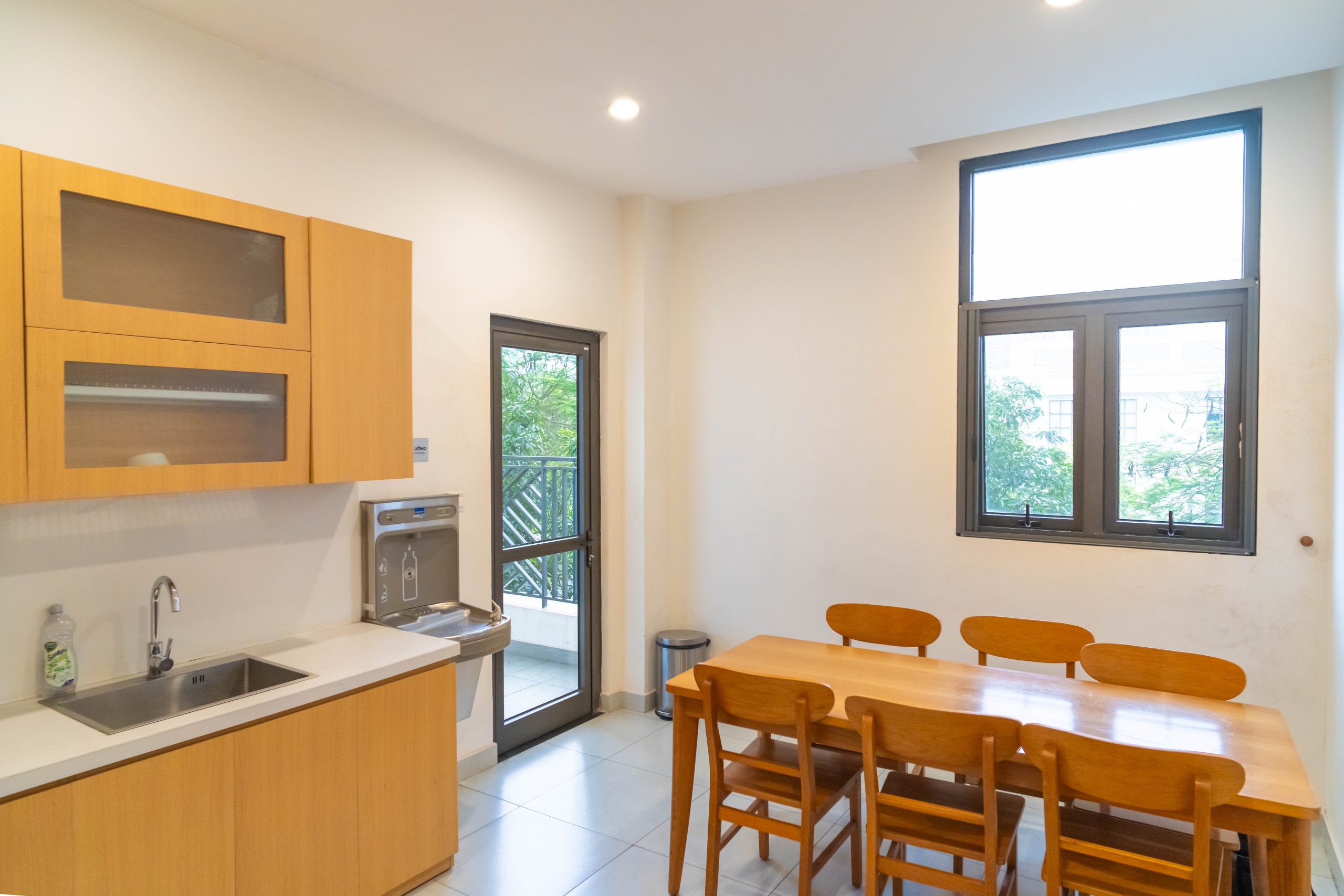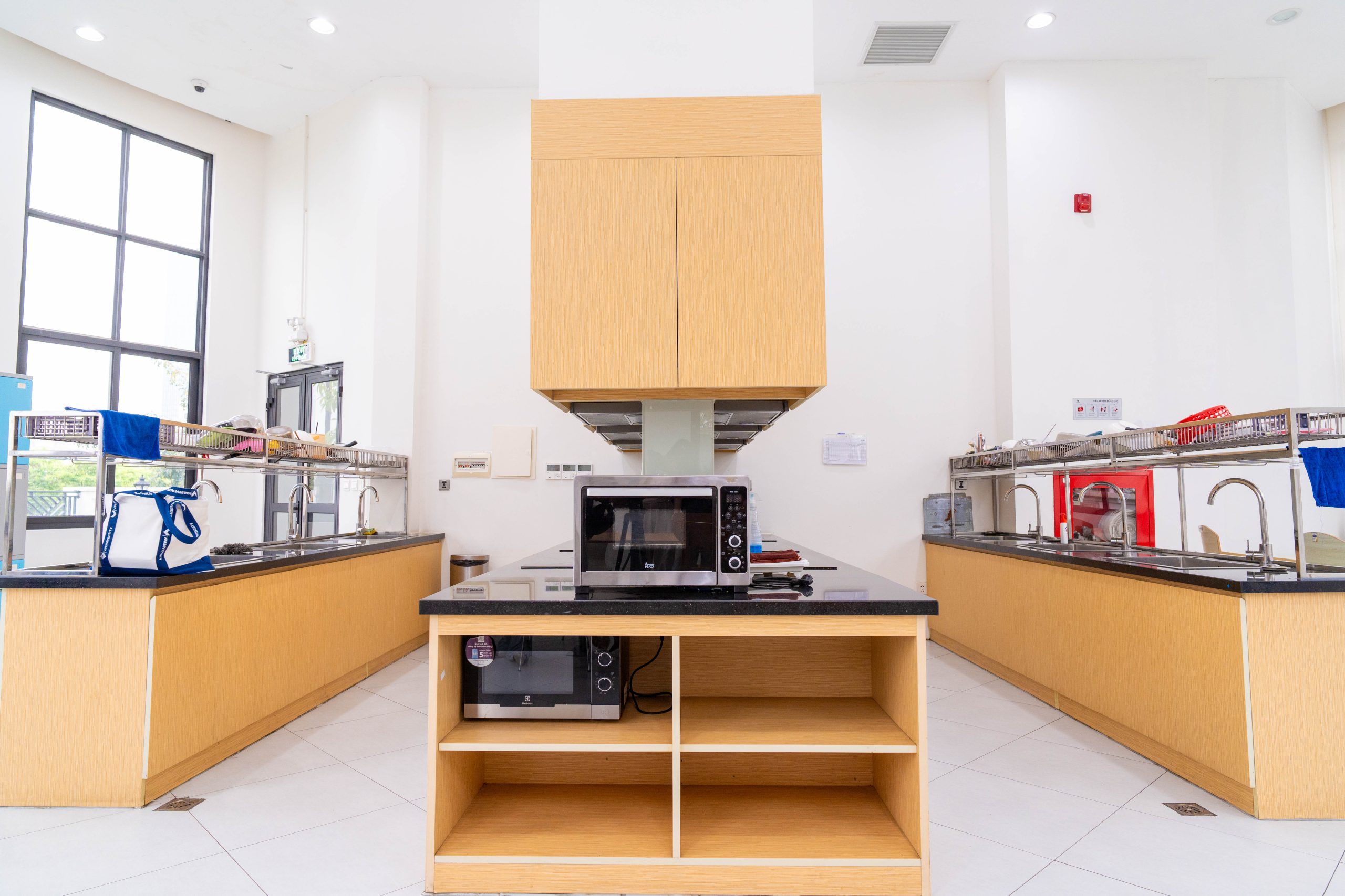 Mỗi tầng của các tòa nhà ký túc xá JA và JB tại VinUni đều có khu vực Pantry được trang bị đầy đủ tiện nghi. Những khu vực này được trang bị sofa, bàn và ghế, tạo môi trường thoải mái cho sinh viên giao lưu và thư giãn cùng nhau. Ngoài ra, mỗi phòng Pantry còn được trang bị lò vi sóng và tủ đựng đồ, giúp sinh viên chuẩn bị bữa ăn và dùng bữa cùng bạn bè, từ đó tăng cường tinh thần cộng đồng và tình đoàn kết tại VinUni.
