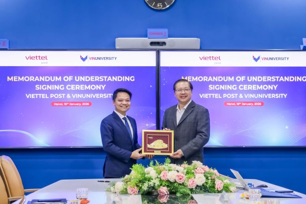 Hà Nội, ngày 16/01/2026, Trường Đại học VinUni (VinUni) và Tổng Công ty Cổ phần Bưu chính Viettel (Viettel Post) đã chính thức ký kết Biên bản Ghi nhớ (MoU), đánh dấu một bước tiến quan trọng trong việc tăng cường hợp tác giữa nhà trường và doanh nghiệp trong các lĩnh vực “logistics”, quản lý chuỗi cung ứng và dịch vụ chuyển phát nhanh.
